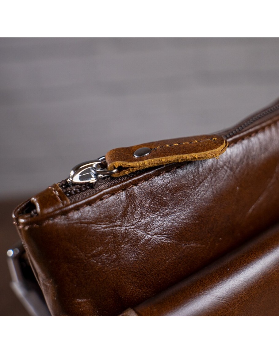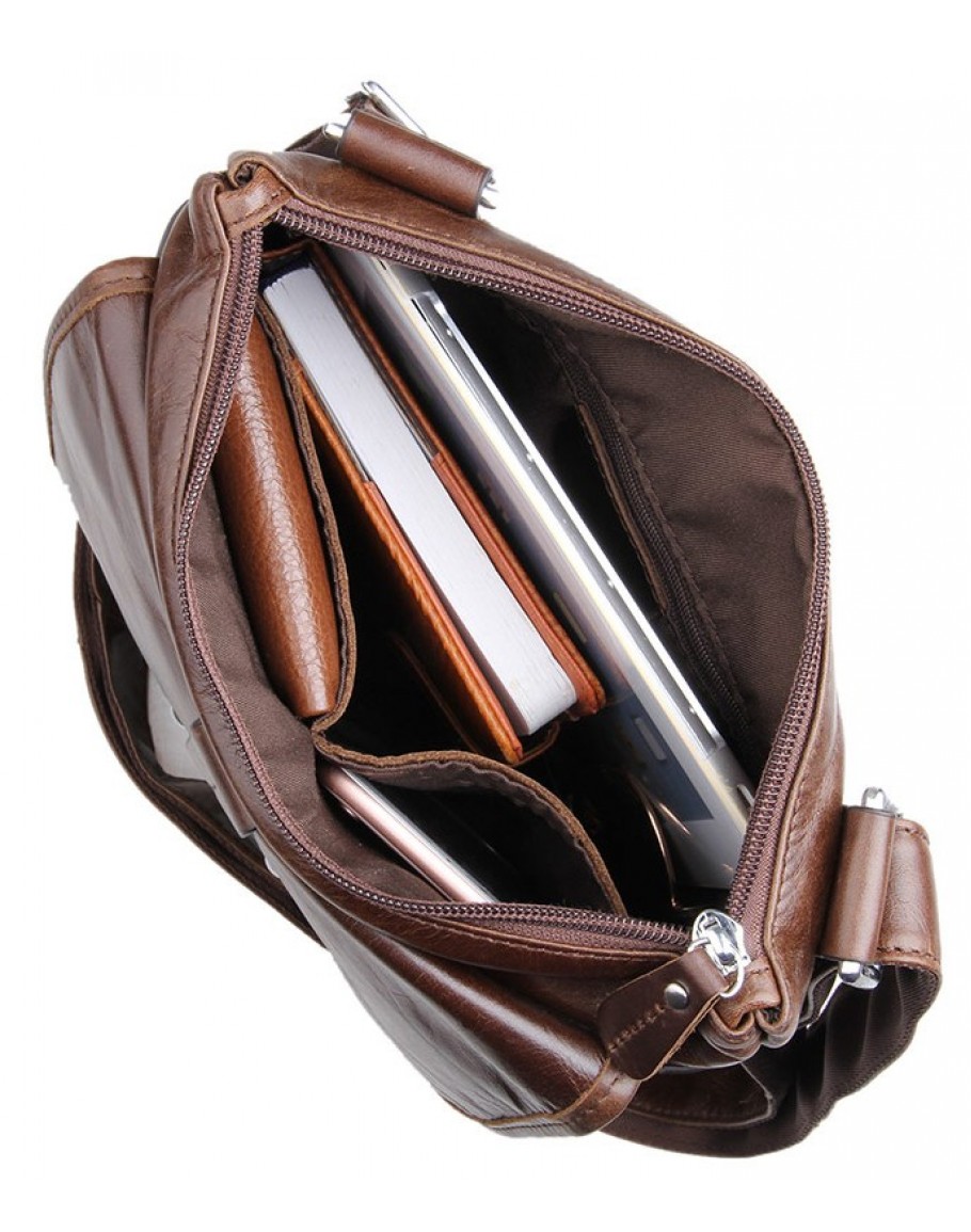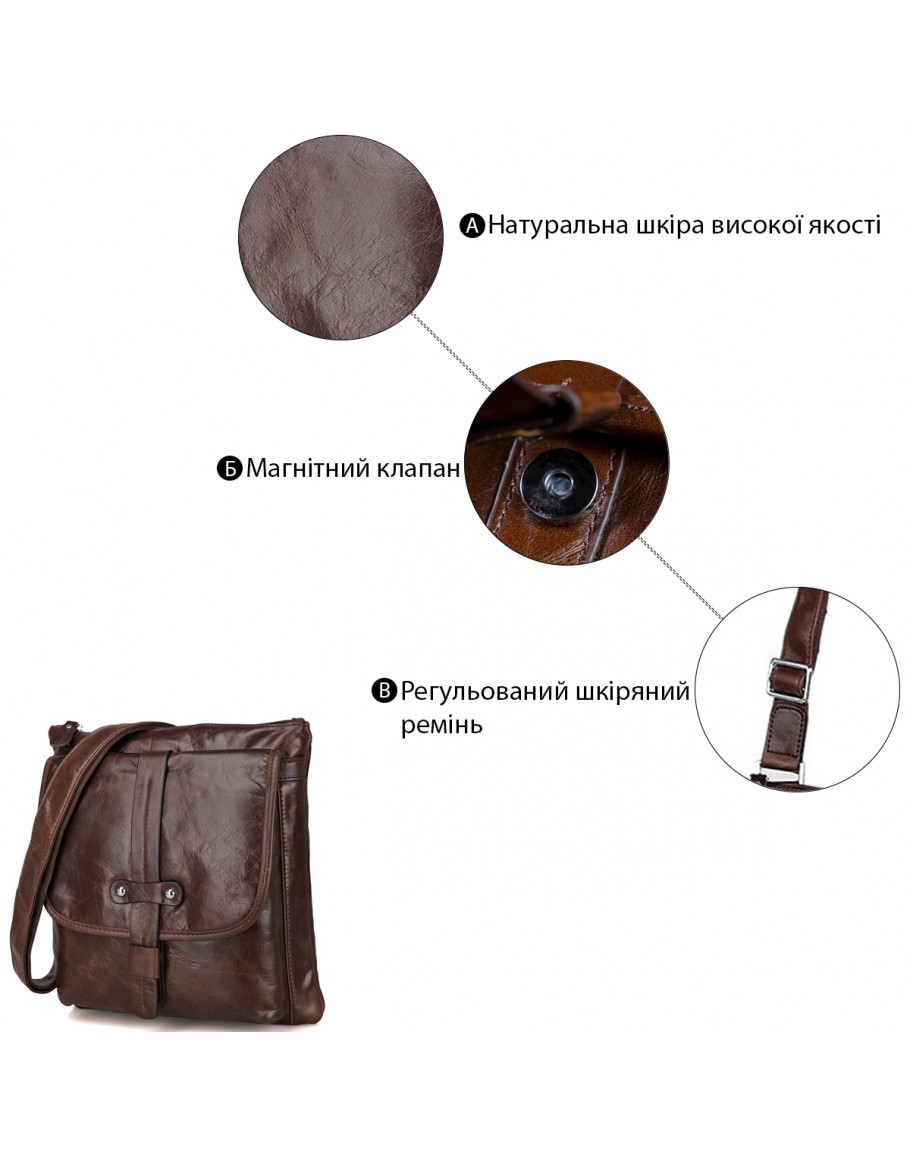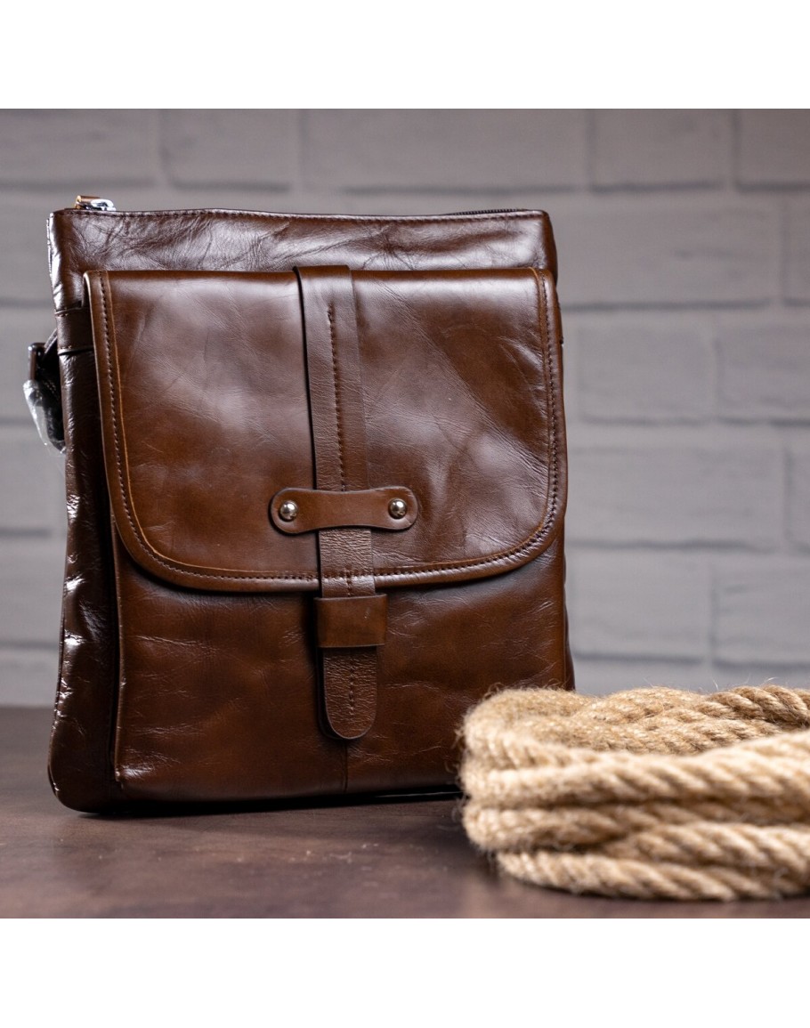 Мужская повседневная сумка через плече имеет приятный шоколадный (темно-коричневый цвет). Сумка рассчитана на повседневное использование, она удобна и практична.